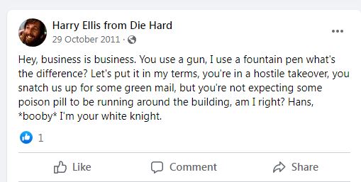For those of you who don’t know the quote, I’m afraid you might as well just give up now. I’ve put the full quote in from Harry’s facebook page, so it kind of explains it a bit more. In case you don’t know what happened, it doesn’t end well for Harry either.